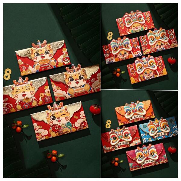 4pcs, Year Of The Dragon Red Envelope, 2024 Chinese New Year Money Envelope, Chinese New Year Decoration, Creative Red Packet Bag Perfect For Spring Festival Wedding Birthday Greeting