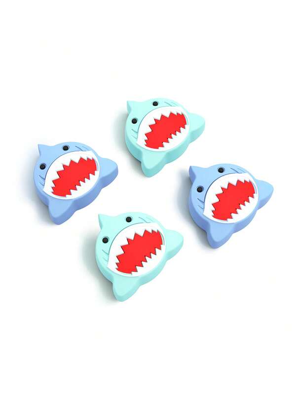 4pcs (Light Green + Light Blue) Shark Pattern Silicone Joystick Cap Compatible With Switch
