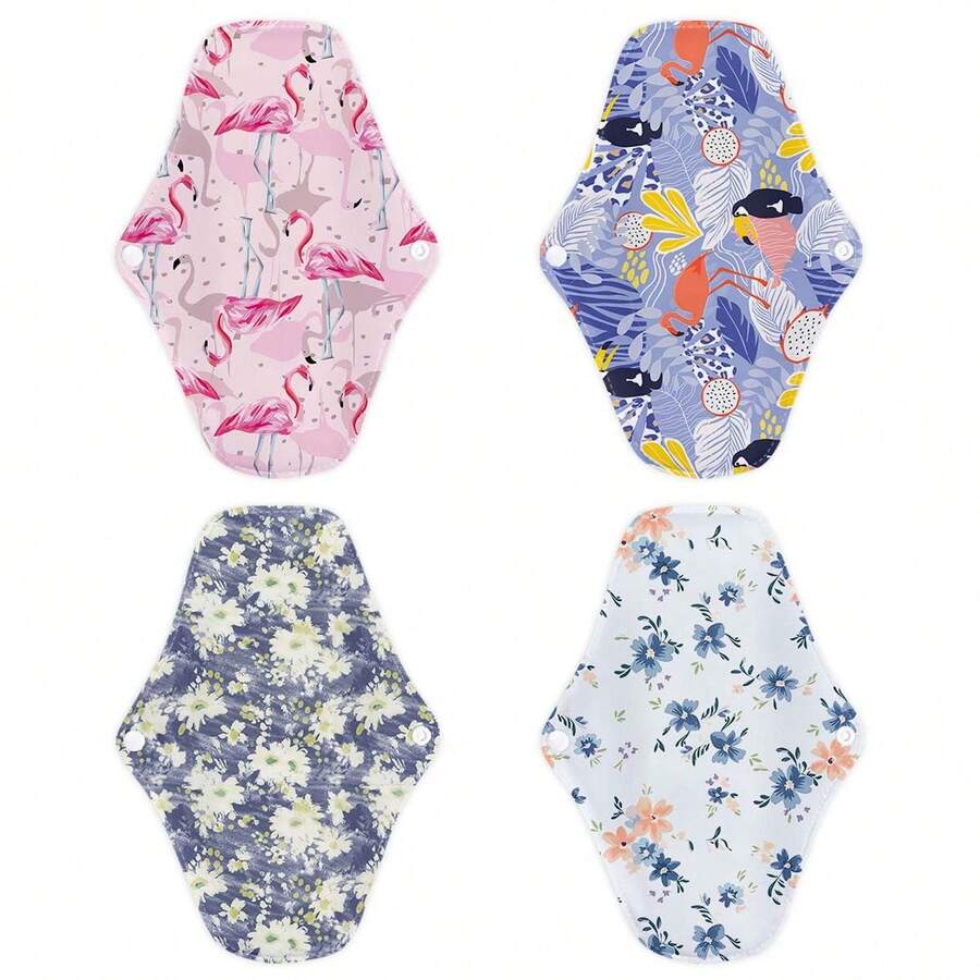 4pcs Bamboo Charcoal Cloth Menstrual Pads/Reusable Sanitary Pads/Mama Panty Liners Regular Flow Random Color