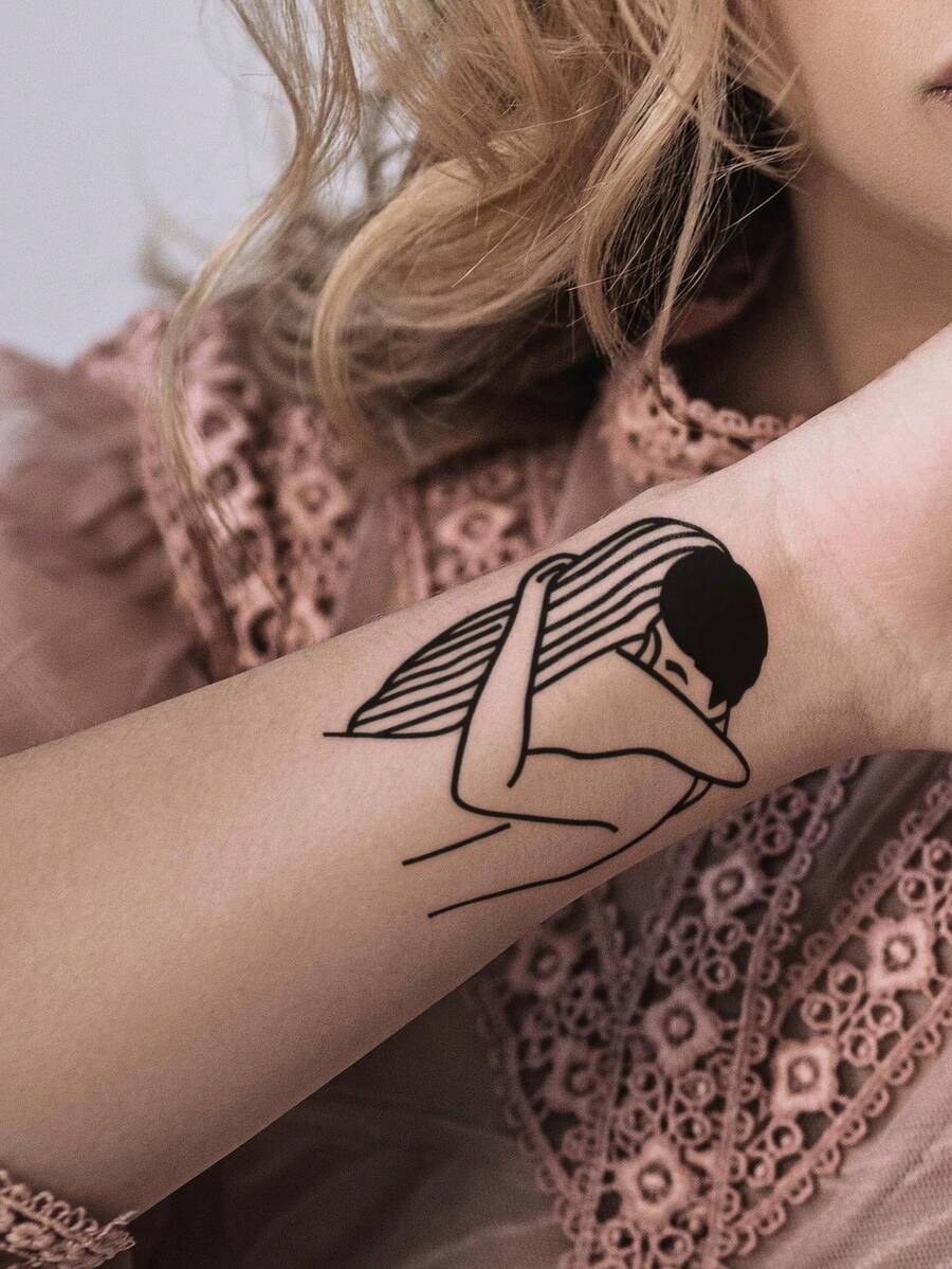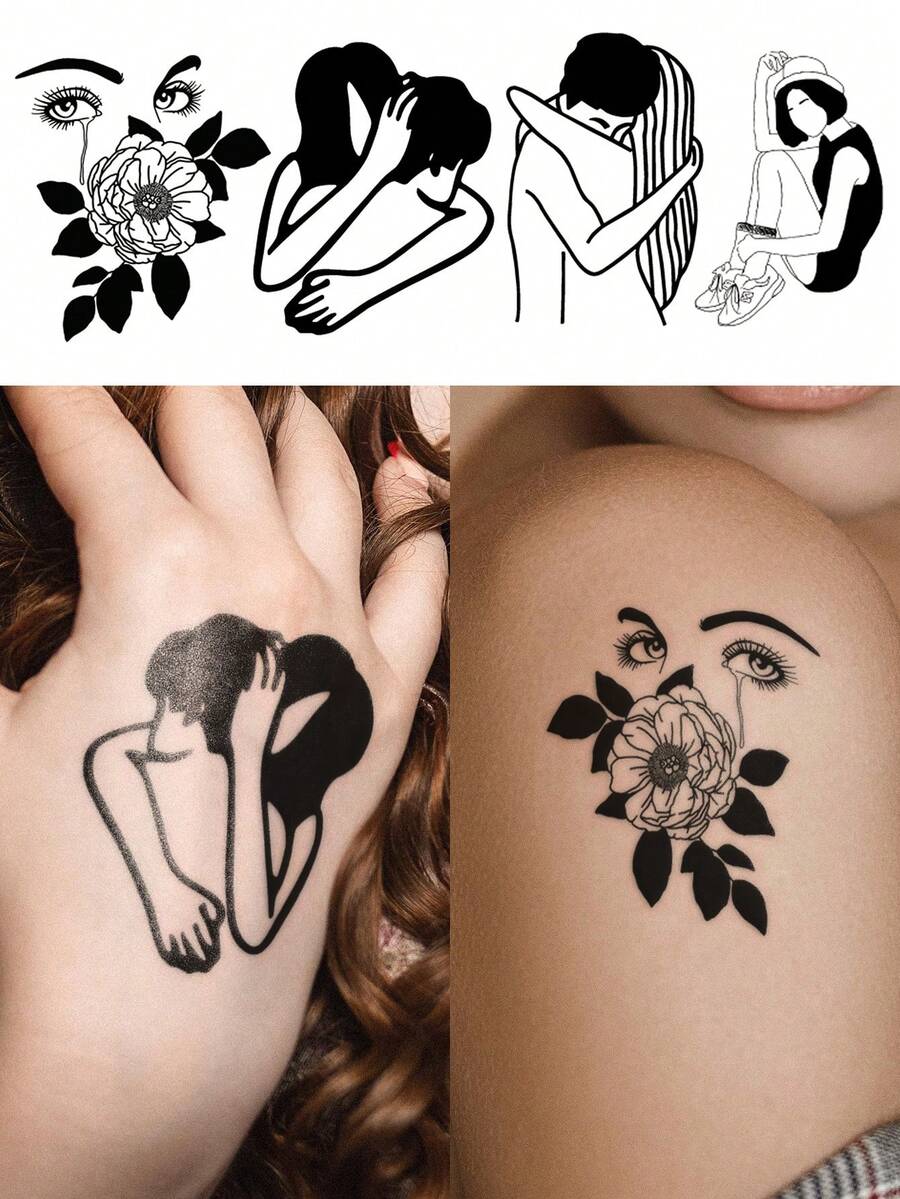 4pcs Black Simple Style Couple Pattern Temporary Tattoo Sticker For Wrist And Other Small Body Parts