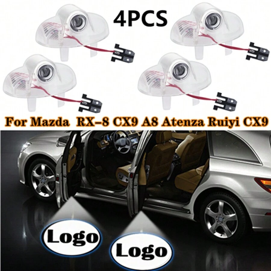 4pcs Car Door Welcome Ligh Emblem Shadow Ghost Entrance Step Projector Courtesy Lights For RX-8 CX9 A8 Atenza Ruiyi CX9 Car Styling