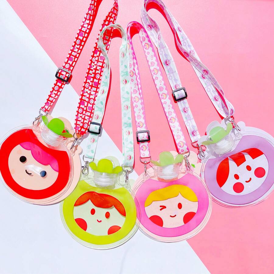 4pcs Cute Cartoon Tomato Girl Printed Water Injection Hot Water Bag, Can Be Used As Neck-Hanging, Portable, And Multi-Purpose Hand Warmer For Winter