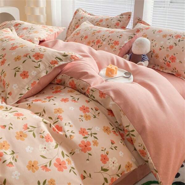 4pcs Fresh Floral Printed Duvet Cover Set (1 Duvet Cover, 1 Bed Sheet And 2 Pillowcases, Without Comforter Filling), Modern Polyester Bedding Set Suitable For All Four Seasons