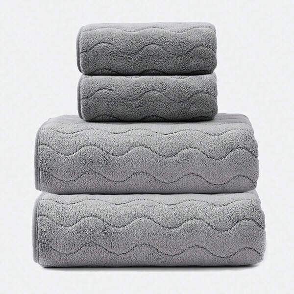 4pcs Gray Striped Coral Fleece Towel Set For Adults, Including 2 Bath Towels And 2 Hand Towels, Soft, Absorbent And Non-Shedding, Suitable For Hotels, Spas And Home Use