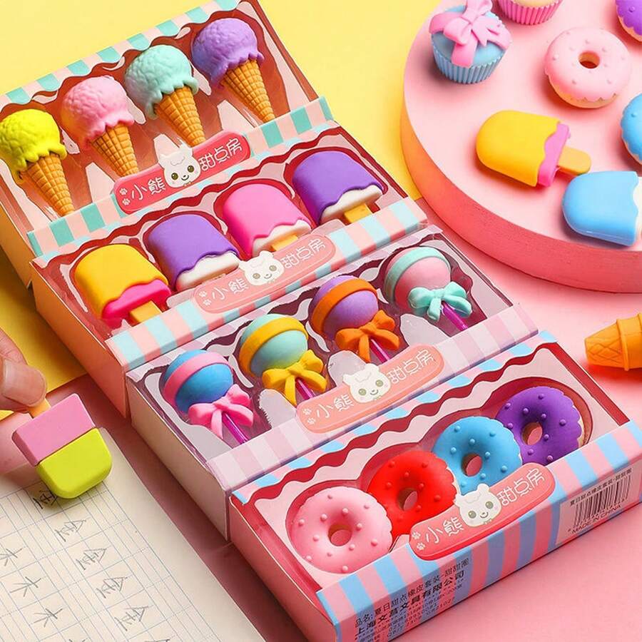 4pcs Kids' Mini Lollipop Shaped Eraser & Cute Jigsaw Puzzle Pencil Eraser, For Fun Game Rewards, Children's Gifts, School Supplies