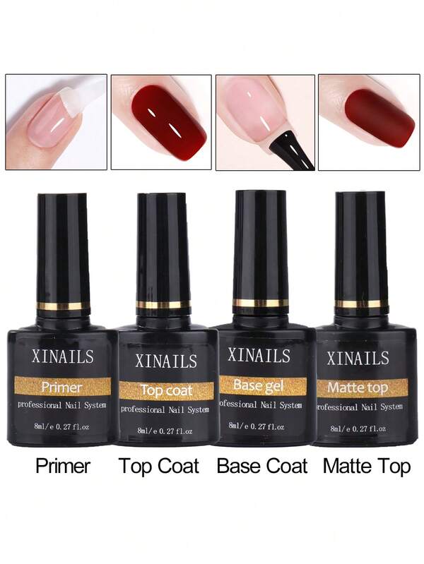 4pcs No Wipe Function Nail Gel Kit, 8ml Base/Top Coat,Matte Top&Air Dry Primer Set Soak Off UV LED Long-Lasting Glossy Shine Christmas Nail Gift For Women Manicure Salon Accessories Nail Supplies