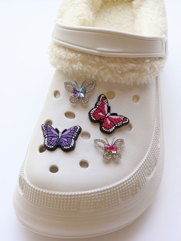 4pcs Rhinestone Butterfly Design Shoe Decoration, Zinc Alloy Cute Accessories For Clogs Slides