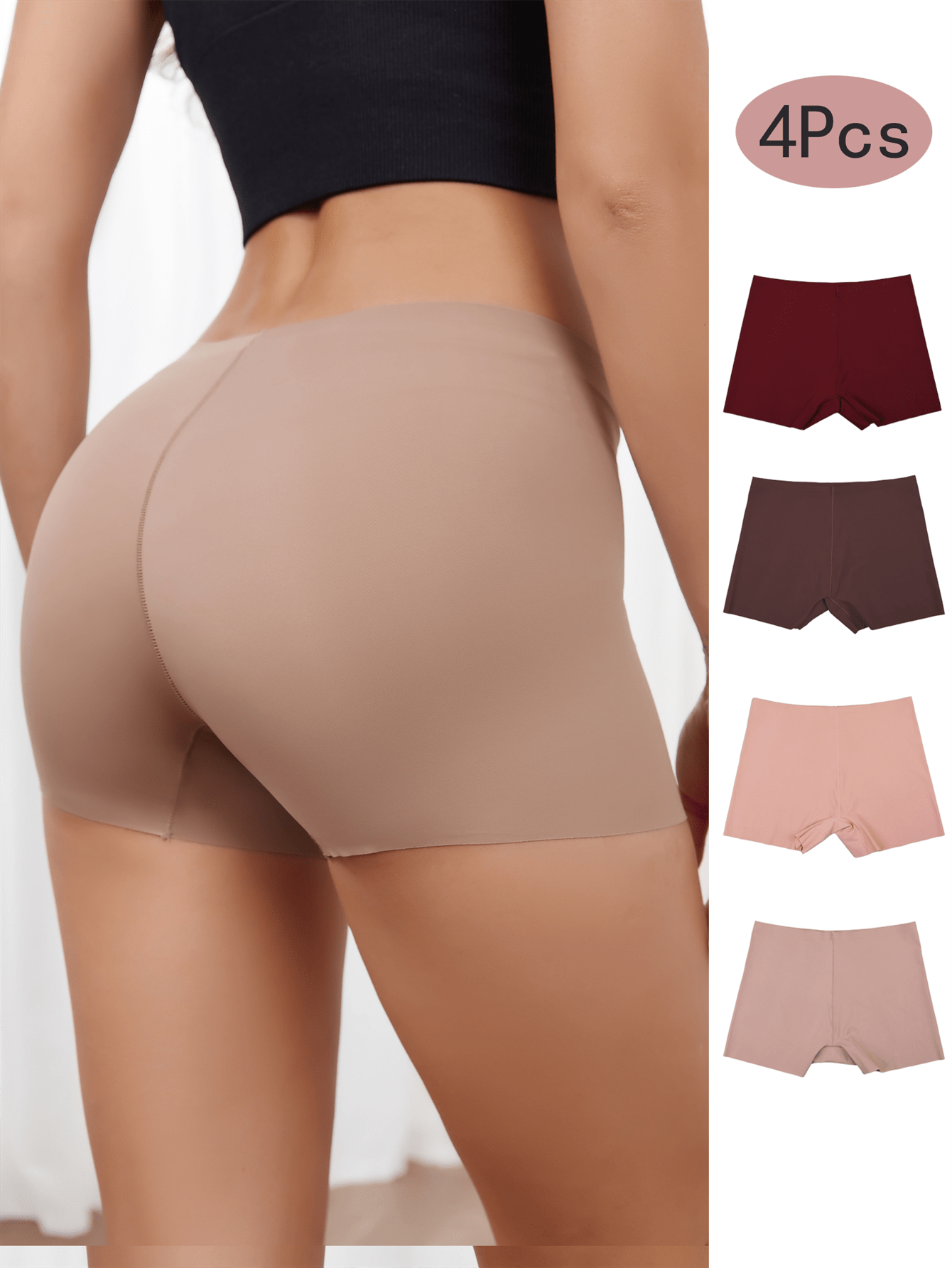 4pcs Seamless Boyshort Panties, Soft & Comfortable Low Waist Panties