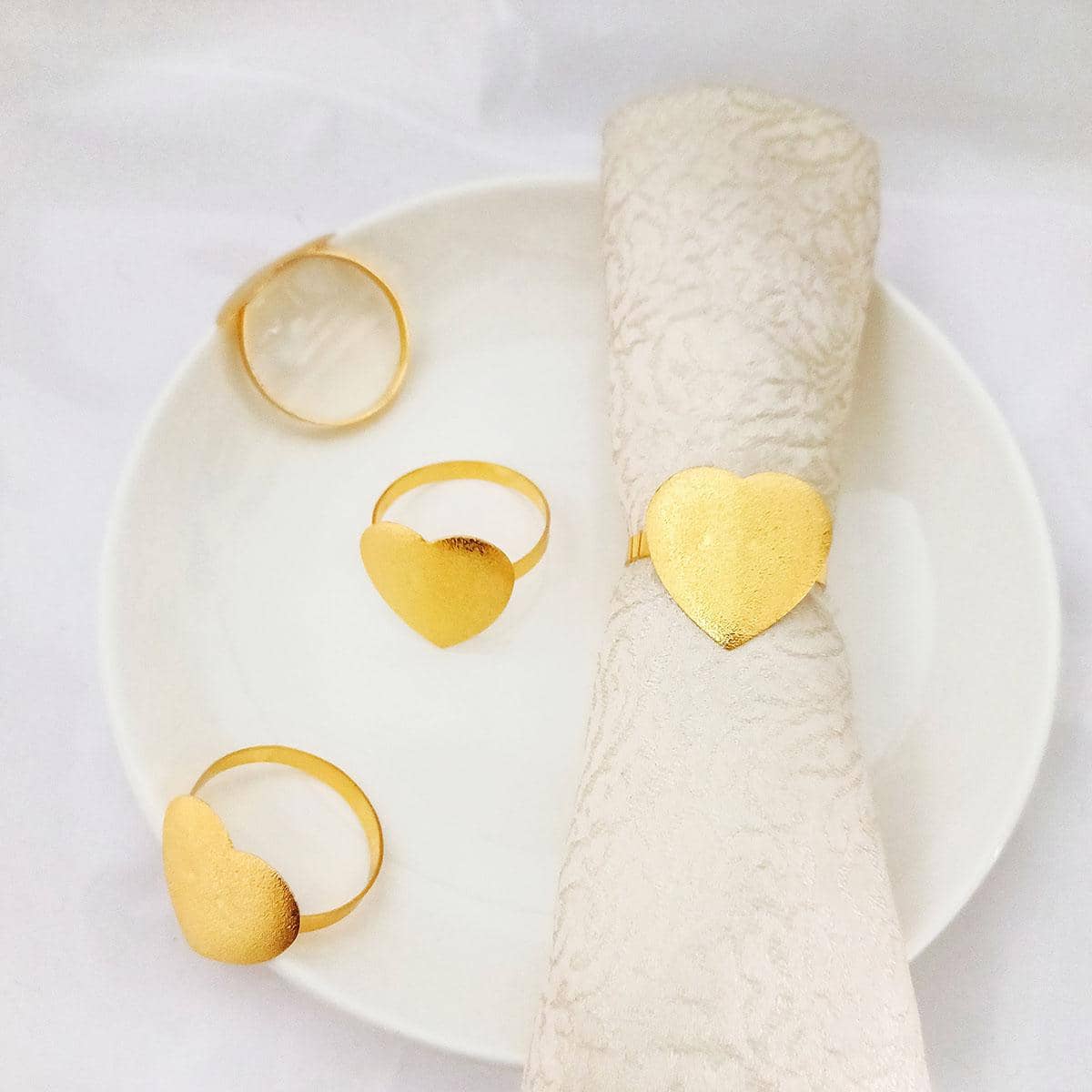 4pcs Simple Love Heart Shaped Napkin Rings, Table Decoration, Gold