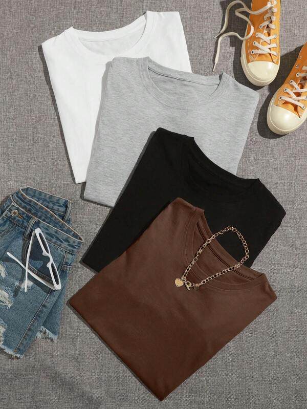 4pcs Solid Round Neck Tee