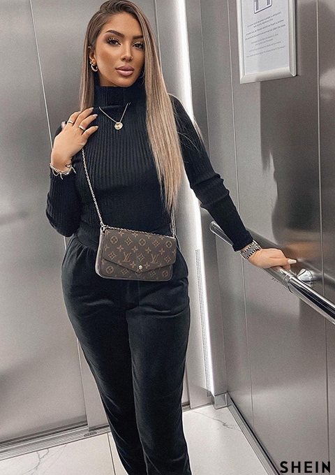 SHEIN Essnce 4pcs Turtle Neck Ribbed Knit Sweater