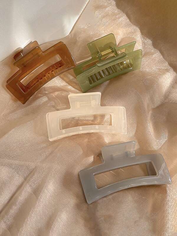 4pcs Women's Pure Color Minimalist Square Shaped Hair Claw Clips With Hollow Out Design