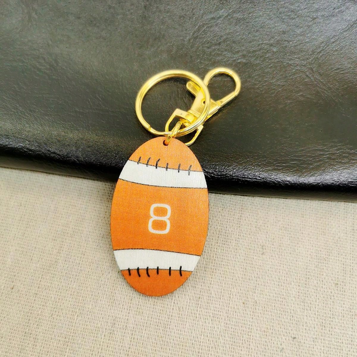 4pcs Wooden Rugby Shaped Keychain Bag Pendant, Multicolor