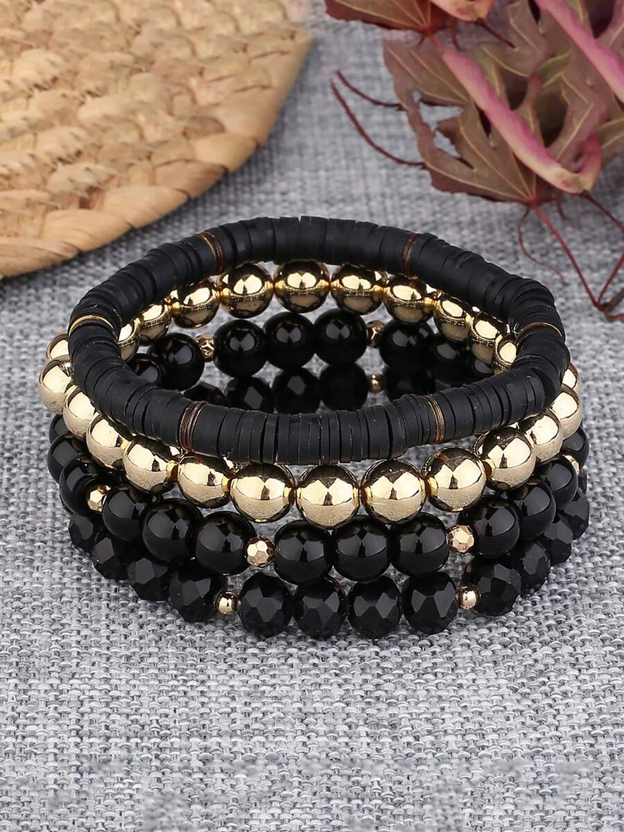 4pcs/Set Bohemian Beaded & Soft Clay Multi-Layered Handmade Bracelet Jewelry