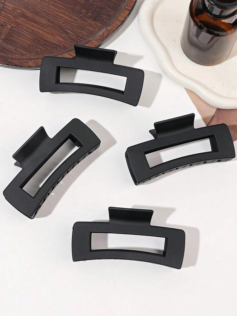 4pcs/Set Large Size Hollow Out Square Hair Claw Clips, Simple & Elegant, Durable Without Damaging Hair