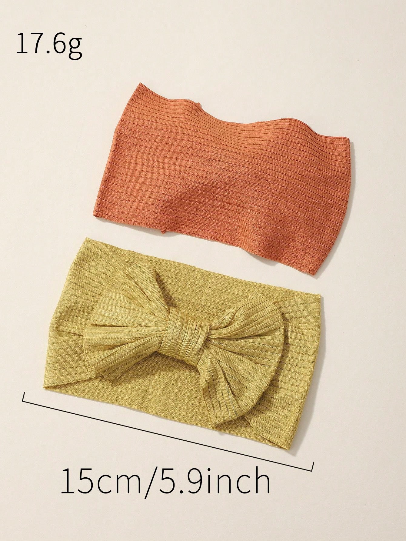 4pcs/Set Solid Color & Striped Wide Edge Elastic Hairband For Kids