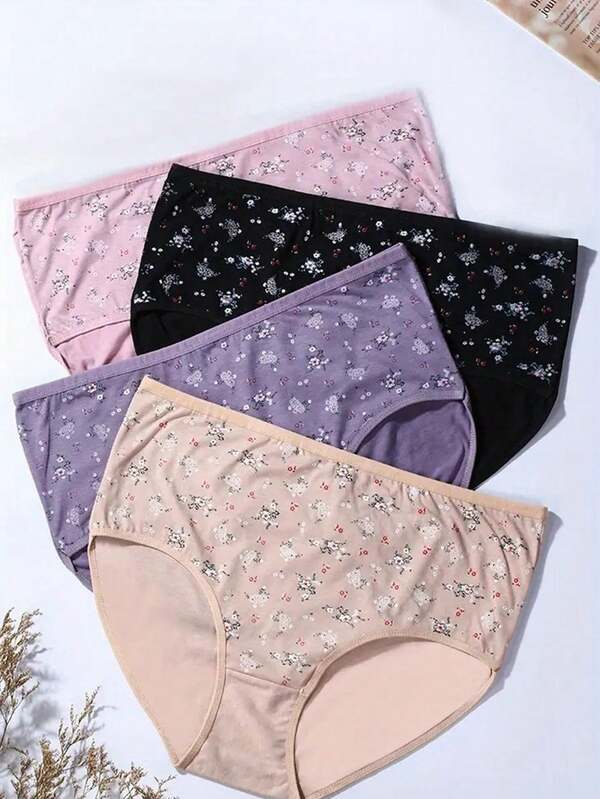 4pcs/pack Women's Plus Size Comfy High Waist Printed Triangle Panties For Daily Wear