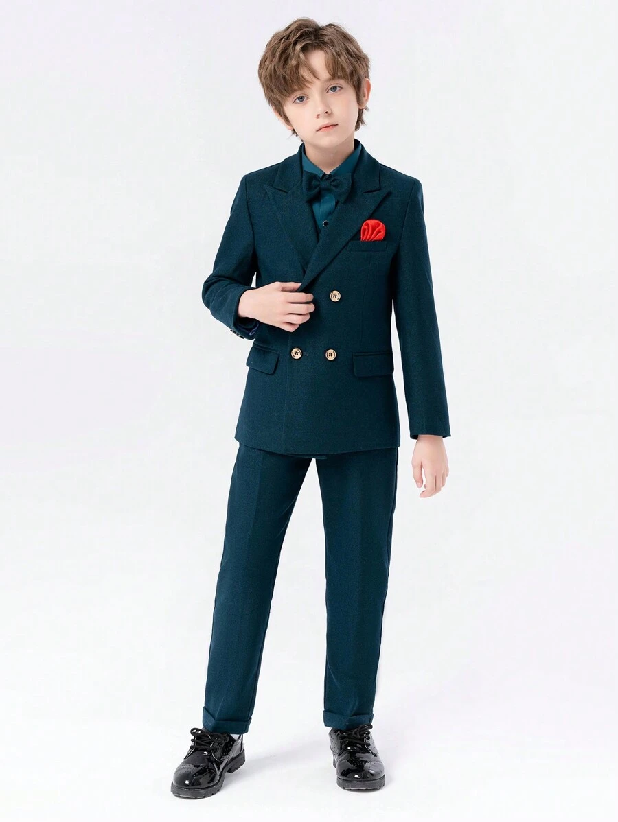 4pcs/set Boys' Suit Set With Coat, Vest, Pants And Bow Tie Gentleman Outfit For Christmas And Autumn