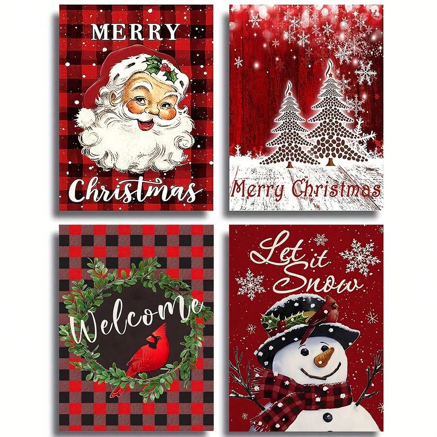 4pcs/set Christmas Canvas Poster, Modern Art, Santa Claus Snowman Combo Canvas Painting Posters, Ideal Gift For Bedroom Living Room Kitchen Corridor, Wall Art, Wall Decoration, Fall Decor, Room Decoration, No Frame