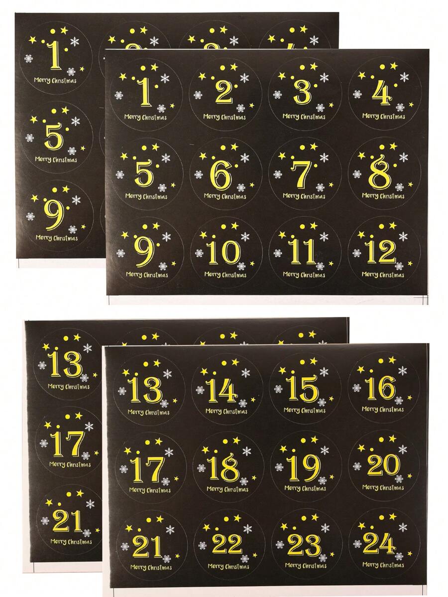 4pcs/set Christmas Countdown Stickers, Merry Christmas Numbers & Stars Round Stickers, Paper Sealing Stickers, Writable Baking Packaging Stickers For Biscuits And Cake Boxes