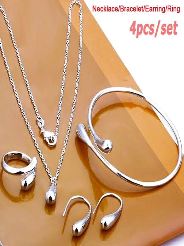 4pcs/set Fashion Simple Water Drop Jewelry Ring Earrings Necklace Bracelet Set of Four