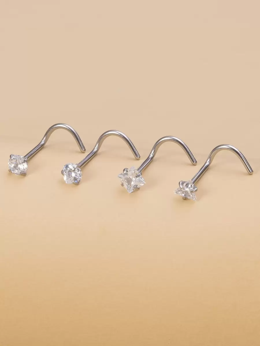 4pcs/set Simple & Stylish Cubic Zirconia Decor Nose Stud For Women And Men, Punk Piercing, A Fashionable Body Jewelry Gift For Any Occasion