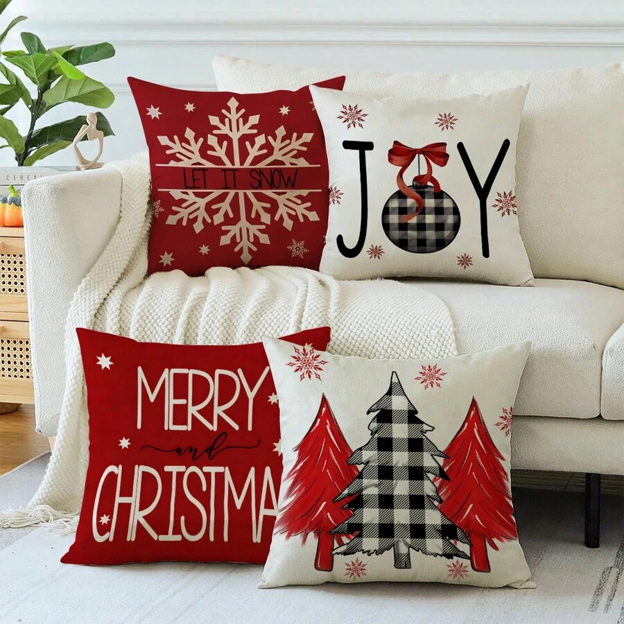4pcs/set Snowflake, Christmas Tree And Bell Patterned Throw Pillow Covers, Modern Style Linen-like Square Cushion Covers With No Insert, Removable And Washable, Great For Christmas Season, Winter, Party, Holiday, Sofa, Boys' And Girls' Bedrooms, Living Room, Home Decor