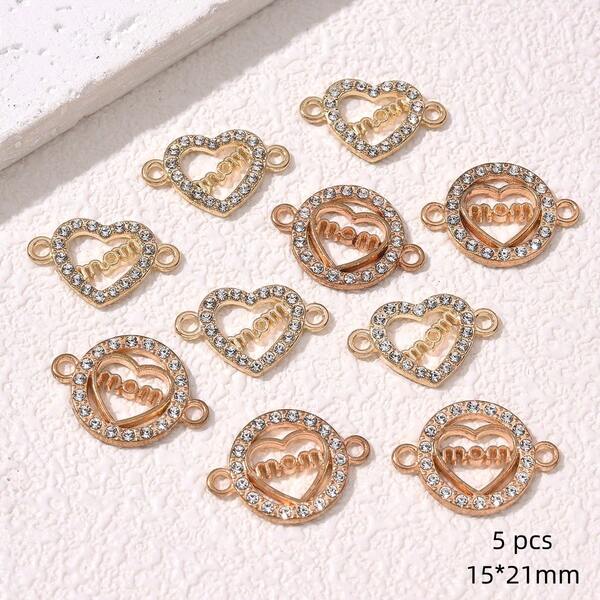 5 Fashionable And Personalized Elegant Alloy Hollow Heart Round Mom Double Hanging Connector Diy Jewelry Bracelet Necklace Accessories Suitable For Women To Wear Or Give Mom Gifts