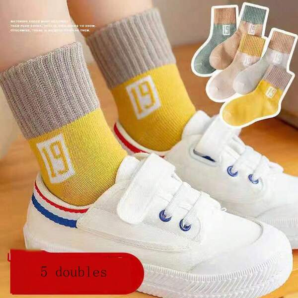 5 Pairs Autumn & Winter Kids' Socks, Mid-Calf Length, Soft & Skin-Friendly Trendy Children'S Socks