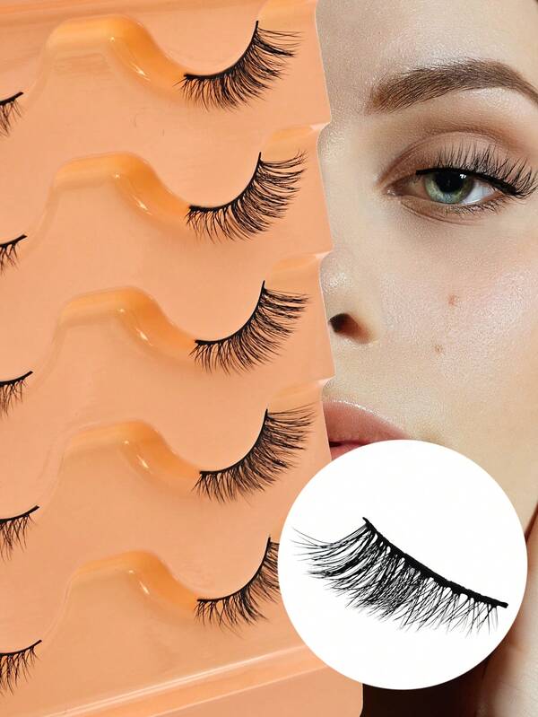 5 Pairs Faux Mink False Eyelashes Volume Half Eyelashes Natural Soft Short Wispy Cat Eye Strip Lashes