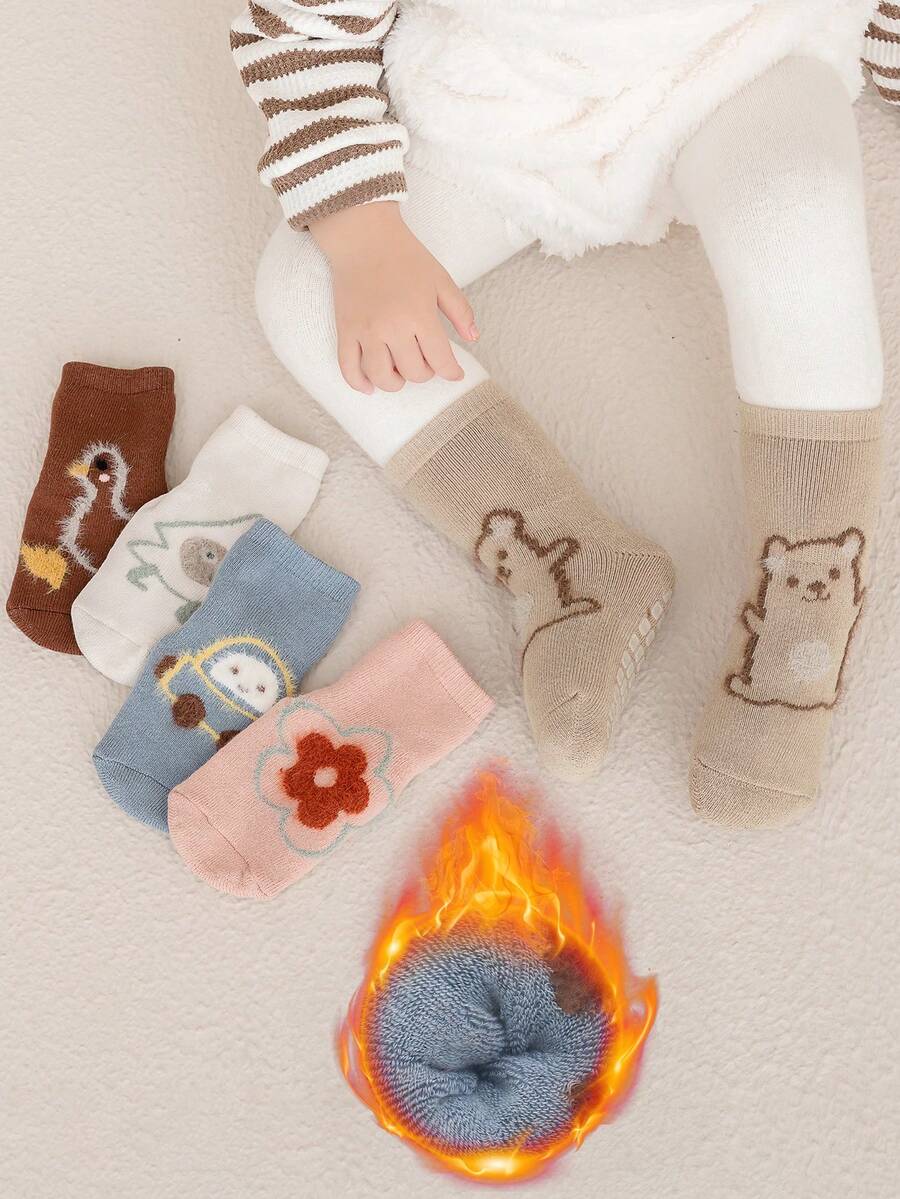5 Pairs/Pack Infant & Toddler Warm Thickened Fluff Middle Tube Socks With Anti-Slip Dots, Suitable For Autumn And Winter Daily Wear