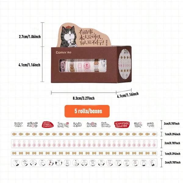 5 Rolls/Set Decorative Tapes & Stickers For Journal, Ins, Cute Fresh Hand Account Book Accessory, Cartoon Comic Diy Stickers, Etc.