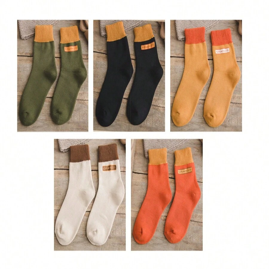 5 pairs of socks women's mid-tube stockings Autumn and winter plus fleece thickened letter wool socks warm towel socks ins suitable for daily use