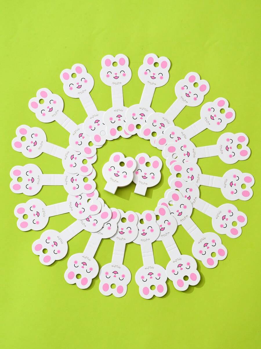 5/100pcs Paper Cute Rabbit Printed Foldable Jewelry Storage Card For Packaging And Displaying Bracelets, Necklaces, Etc.
