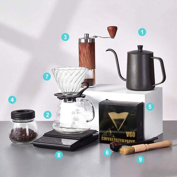 5/6/7/8/9/10 set Portable Coffee Gift Set With Tamp, Cloth Strainer, Hand Drip Coffee Pot