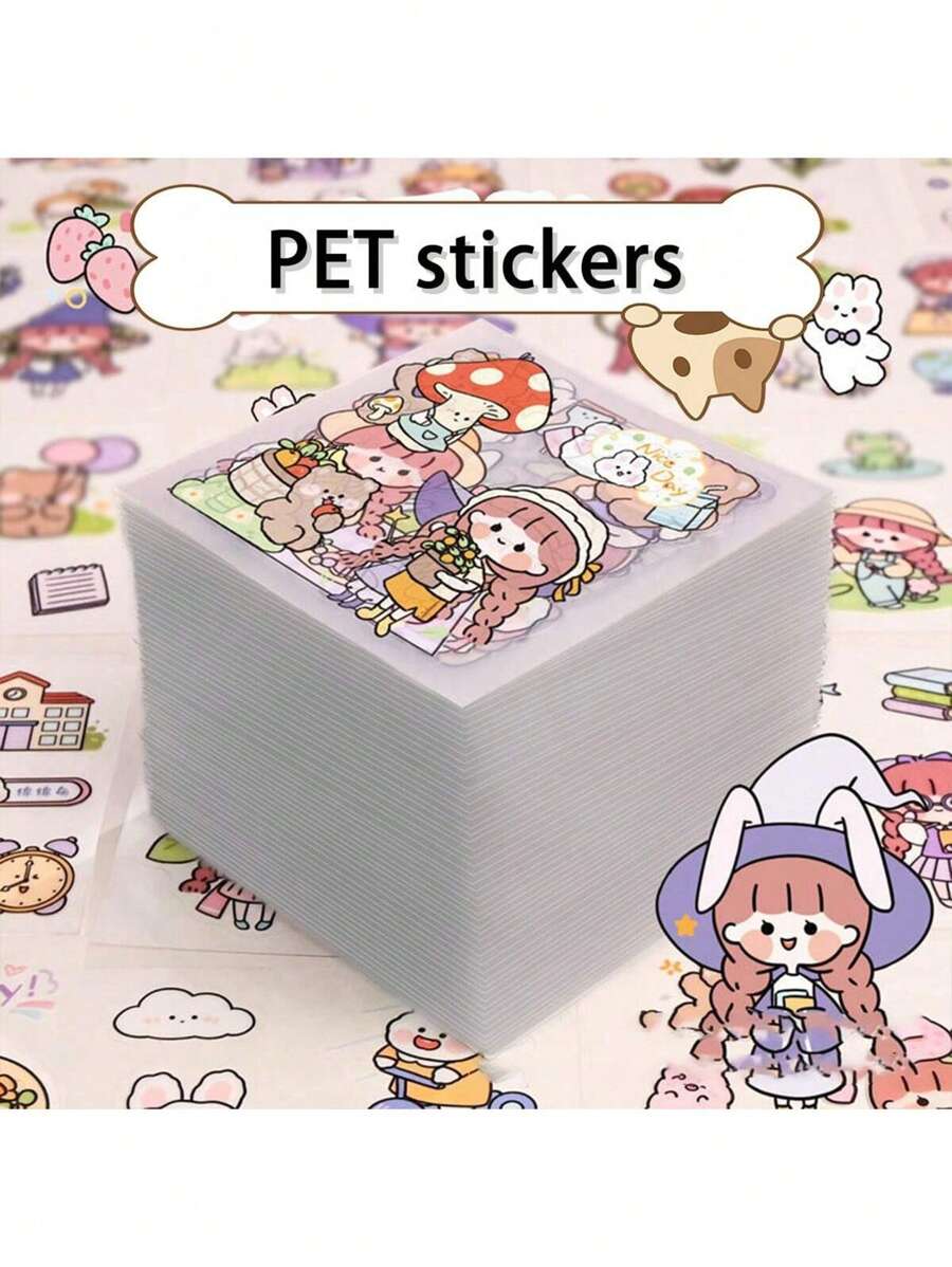 50/100/200pcs PET Transparent Cute Stickers, Random Non-Repeat Pattern DIY Planner Stickers, Cartoon Stickers, Creative Planner & Phone Stickers, Student Water Bottle Stickers, Applicable To Notebooks, Pencil Cases, Holiday Gift Boxes