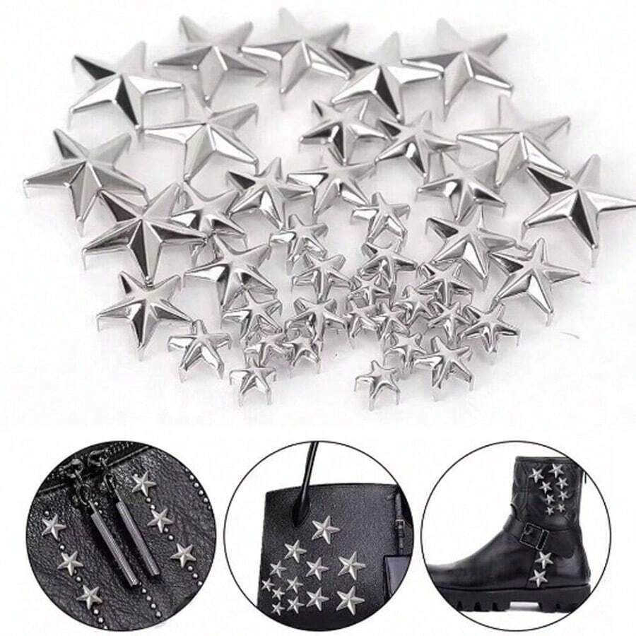 50/100pcs 10mm(0.394in) Pack Metal Silver Star Rivets DIY Clothes Shoes Bags Handmade Clothing Accessories Punk Leather Studs Spikes Spots Nails Head Buttons
