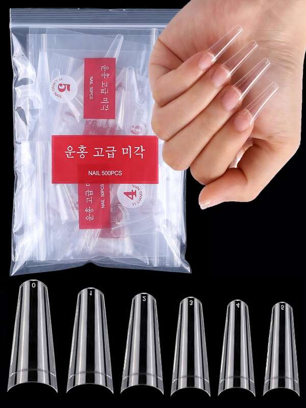 500Pcs Acrylic French Half False Nail Tips Coffin Flat C Curve Nail Art Transparent Fake Nails Tip UV Gel Manicure Supply