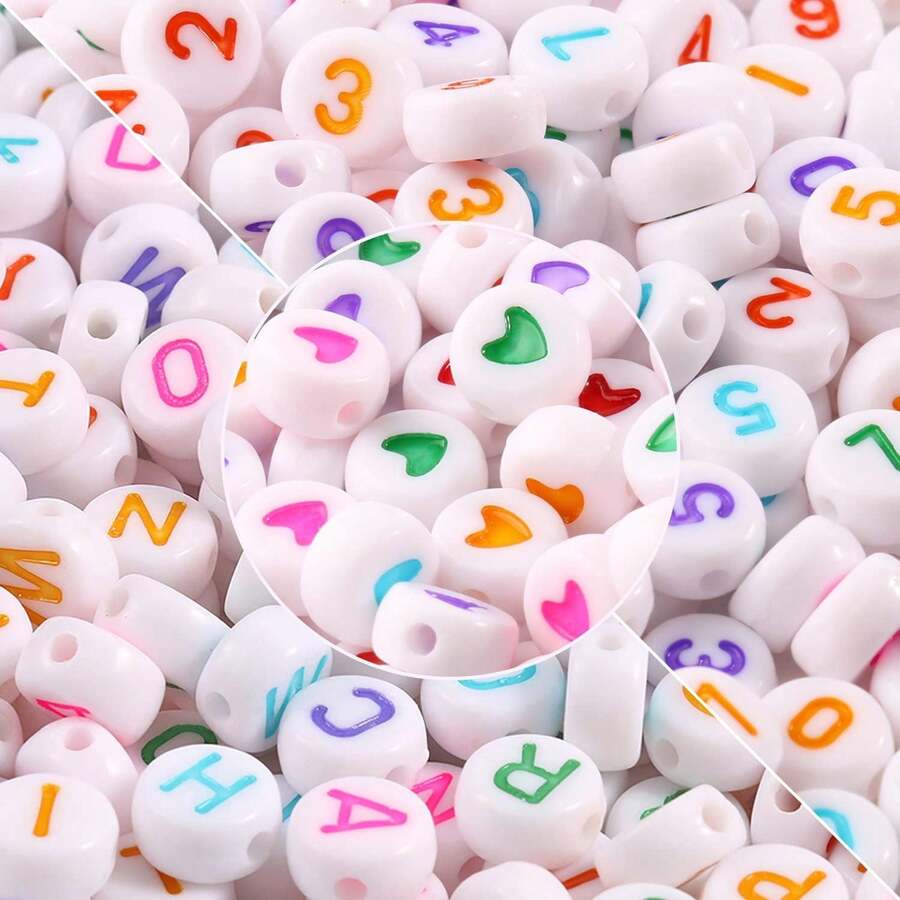 500Pcs Round Letter Beads Acrylic Alphabet Number Beads Heart Beads for Jewelry Making DIY Necklace Bracelet (7x4mm)