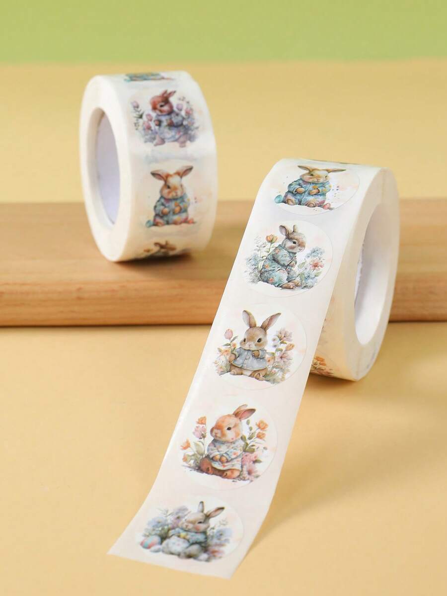 500pcs/Roll Easter Bunny Round Stickers, Easter Spring Rabbit Pattern Labels, Suitable For Laptops, Water Bottles, Luggage, Computers, Phones, Easter Gift Decorations, Easter Self-Adhesive Stickers, Suitable For DIY Gifts, Baking Packaging, Easter Happy Party Packaging Stickers, Envelope Stickers, Sealing Stickers, Easter Decorations, Gift Packaging Supplies, Easter Gifts, Party Favors