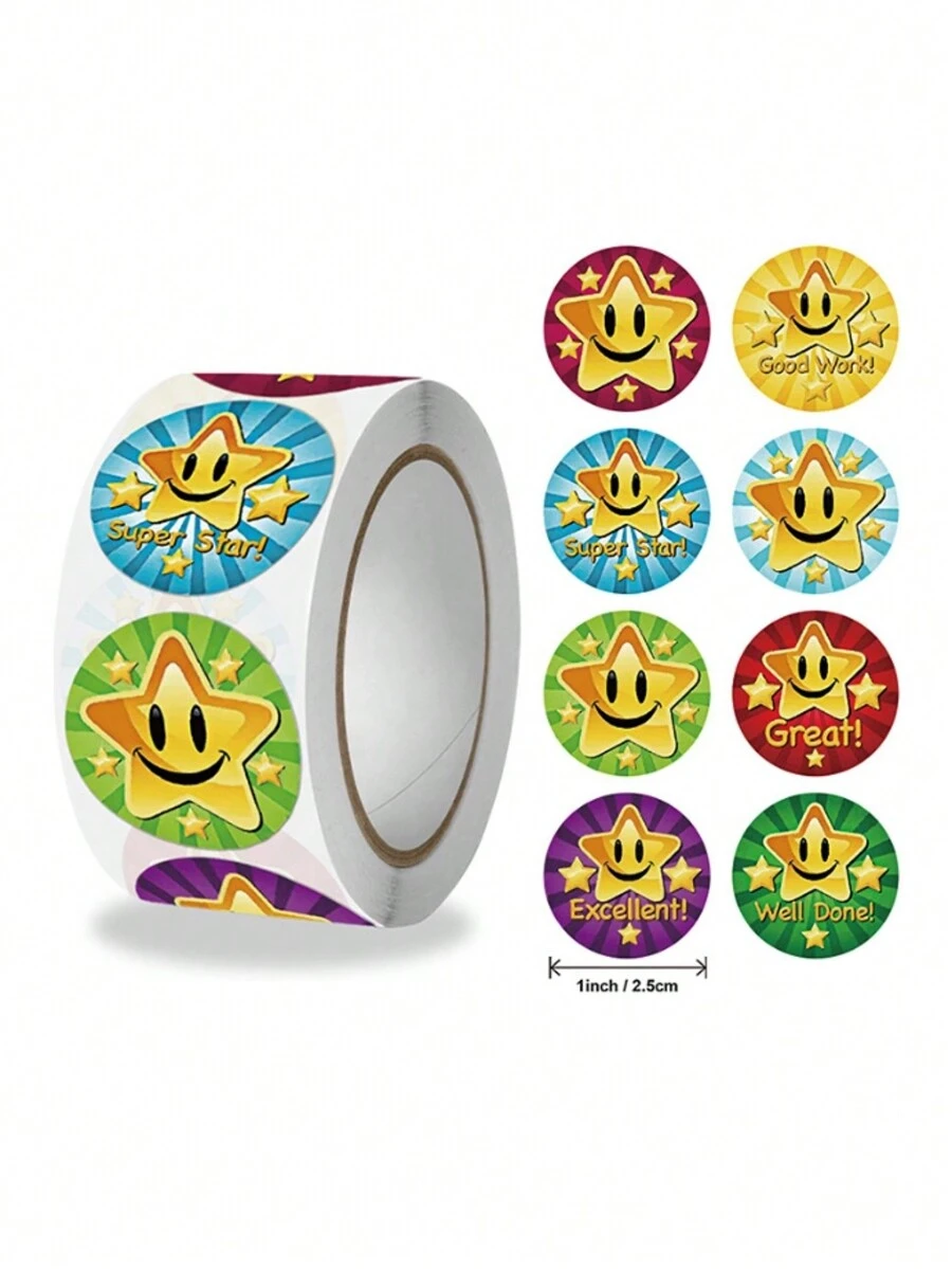 500pcs/Roll Five-Pointed Star Encouragement Cartoon Stickers, Reward Stickers, Gift Party Labels, Suitable For Rewarding Students And Children, Wrapping Gifts, Festival Decoration, Use In Gift Shops, Toy Stores, Stationery Stores, Coffee Shops, And Flower Shops