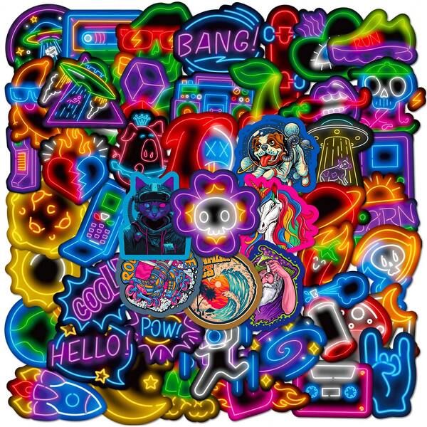 50PCS Cartoon Neon Stickers - Cool Cute Waterproof Vinyl Decals For Laptops, Water Bottles, Computers & Phones - Perfect For Kids, Adults Halloween/Christmas Gift
