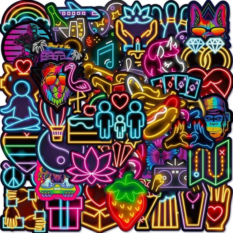 50PCS Neon Cool Cartoon Graffiti Waterproof Stickers Creative Decoration DIY Laptop Skateboard Motorcycle Car Phone Sticker- Perfect For Kids, Adults Halloween/Christmas Gift