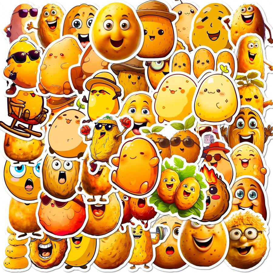 50Pcs Cute Potato Stickers For Water Bottles, Vinyl Waterproof Creative Vegetable Stickers For Laptop Luggage Computer Mobile Phone Guitar Skateboard, Stickers Pack For Teens Adults