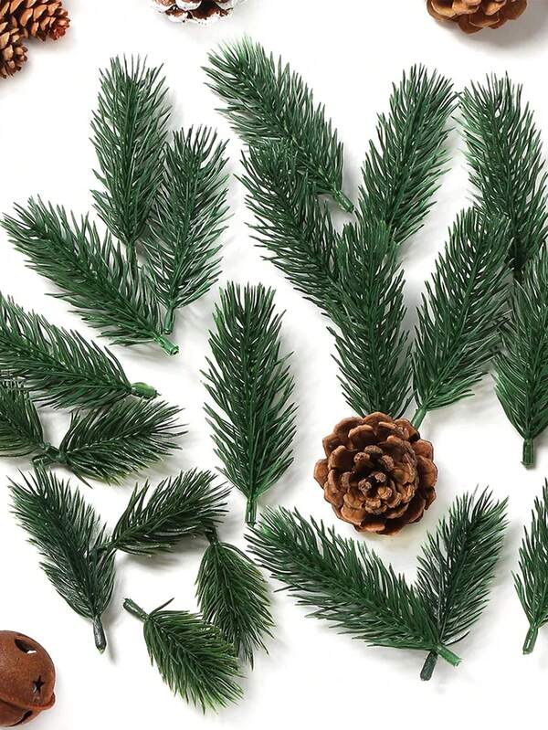 50pcs , Mini Artificial Pine Needles Garland for Christmas Tree Ornamentand Party Decorations DIY Wreath Embellishing and Home Garden Decoration