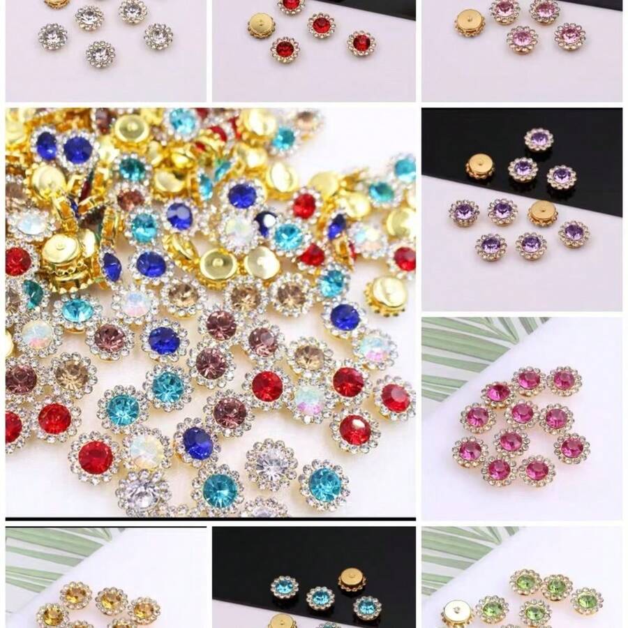 50pcs 10mm(0.394in) Rhinestone Border Flat Bottom Randomly Mixed Color Crystal Cabochons Gemstone Sewing Beads For Jewelry Making DIY Needlework Handmade Bow Decoration Accessories