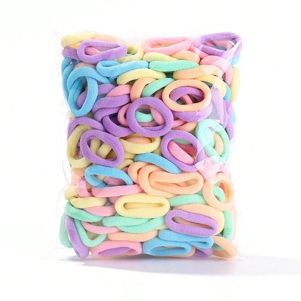 50pcs Candy Color Hair Ties For Kids With Bowknot & Rainbow Elastic Hairbands For Baby Girl's Ponytail