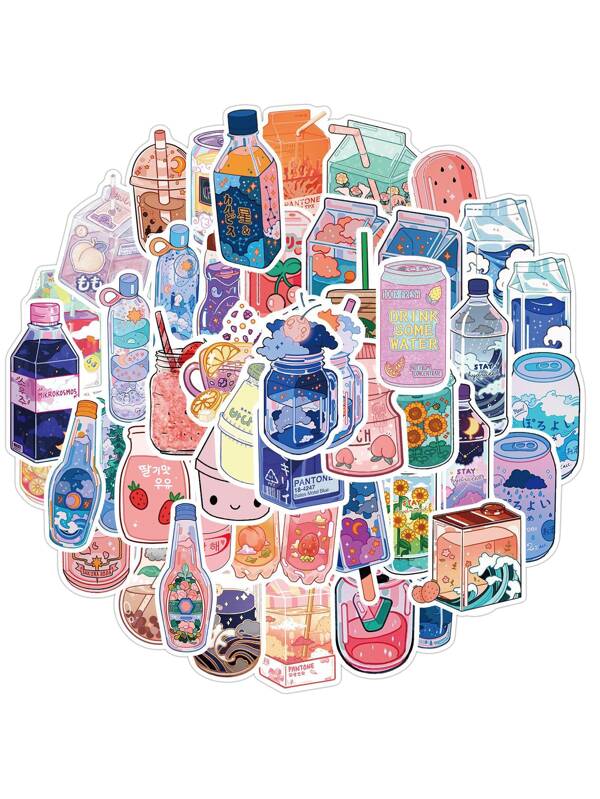 50pcs Cartoon Drink Bottle Stickers For Luggage, Notebook, Guitar Decoration Waterproof Decals