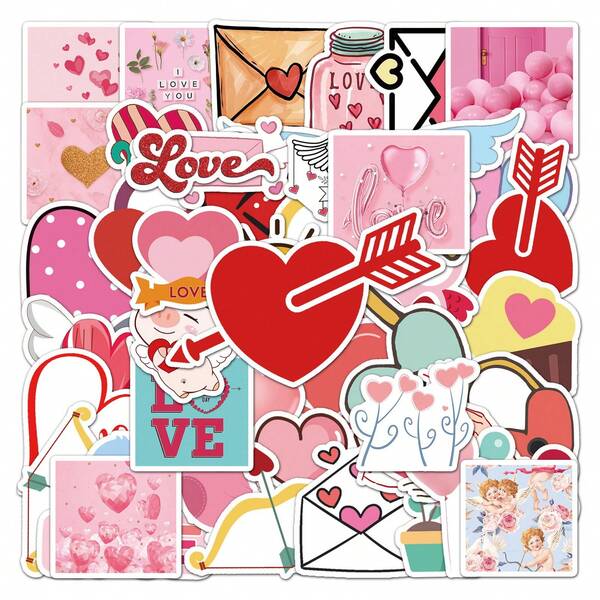50pcs Cartoon Ins Sweet Valentine's Day Pink Heart Decoration Stickers, Waterproof, For Diy Skateboard, Luggage