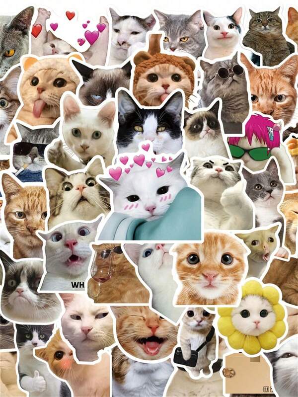 50pcs Cute Cat Waterproof Stickers DIY Creative Toys For Water Bottle Scrapbook Luggage Computer Skateboard Phone Halloween Thanksgiving Christmas Gift